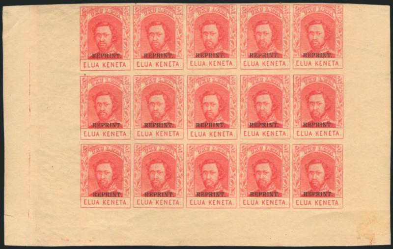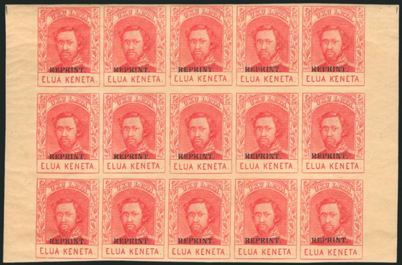598° ogbl Image1889, 2c Carmine, Reprint Ovpt. (51S). Complete sheet of 15, original gum, several h.r., large to clear margins, Fine, ex Taylor, Scott Retail as blocks and singles (Image)