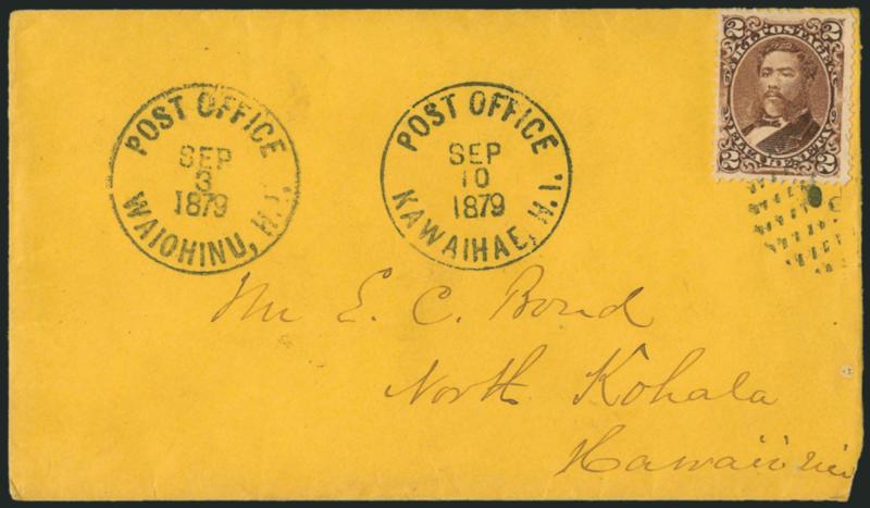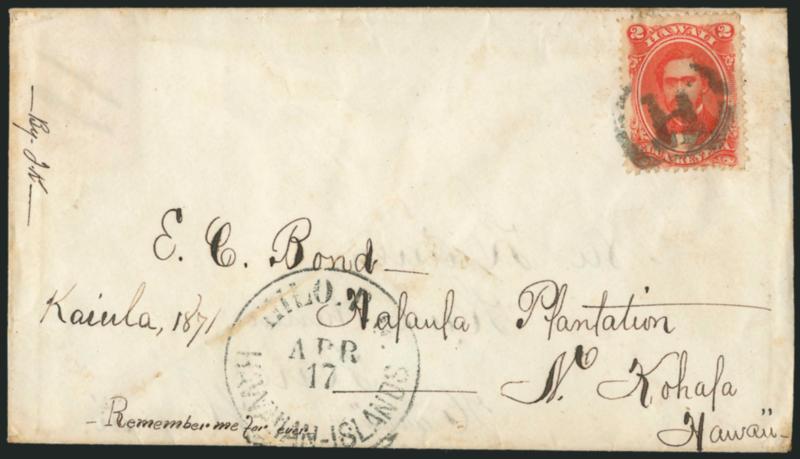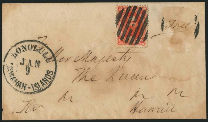 A RARE KAMEHAMEHA V FREE FRANK AND UNUSUAL USE OF 1864 2-CENT VERMILION.