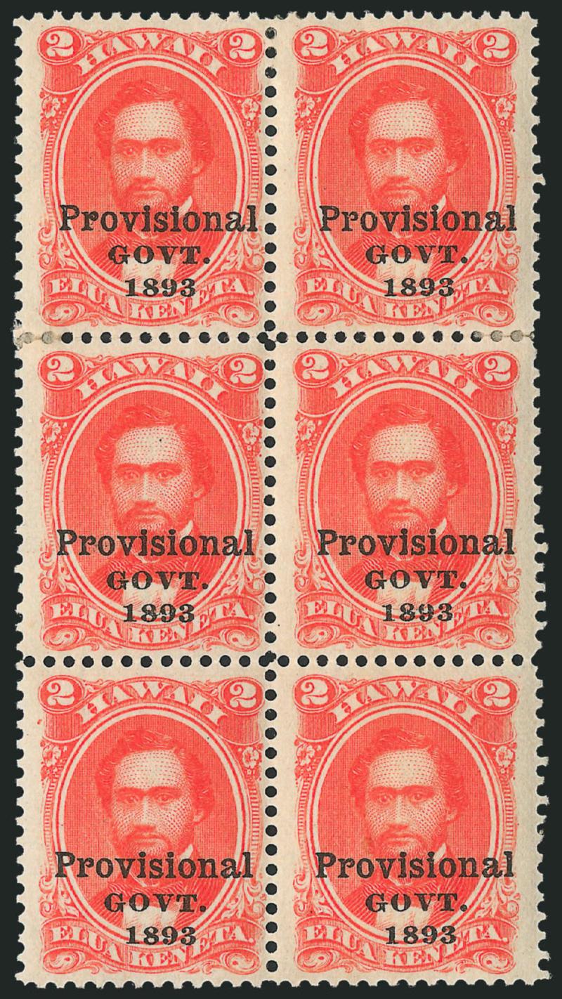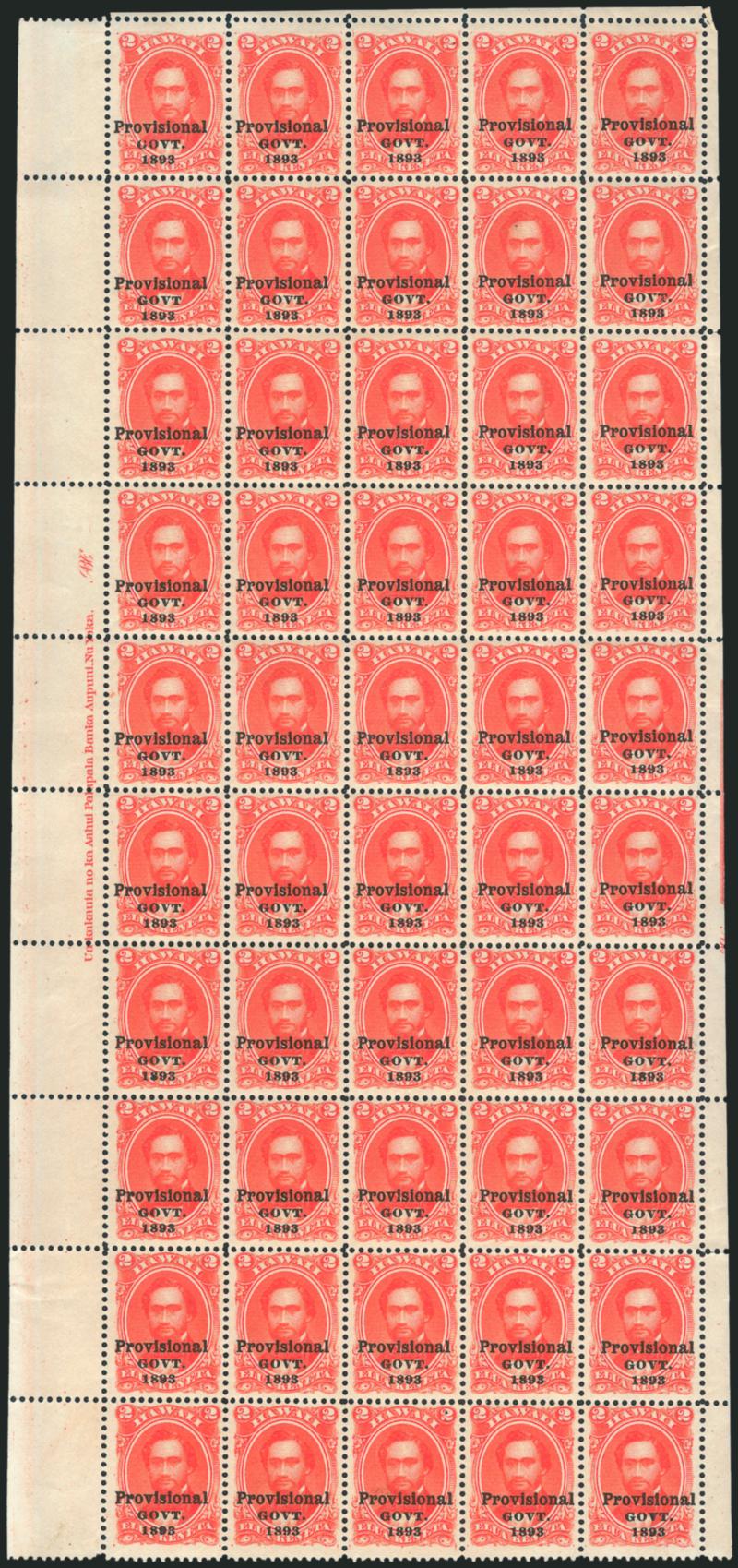 FINE-VERY FINE. A RARE COMPLETE SHEET OF THE 1893 2-CENT PROVISIONAL GOVERNMENT ISSUE WITH BLACK OVERPRINT.
