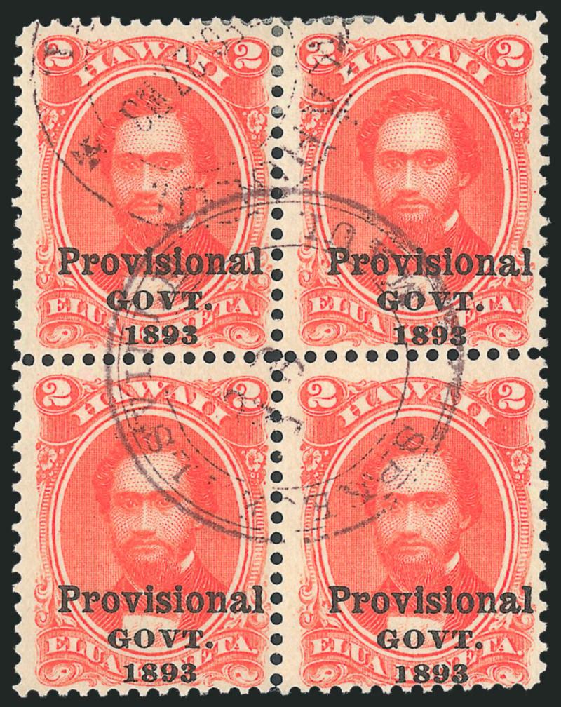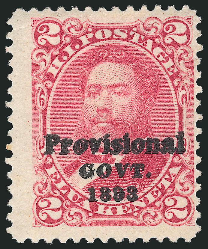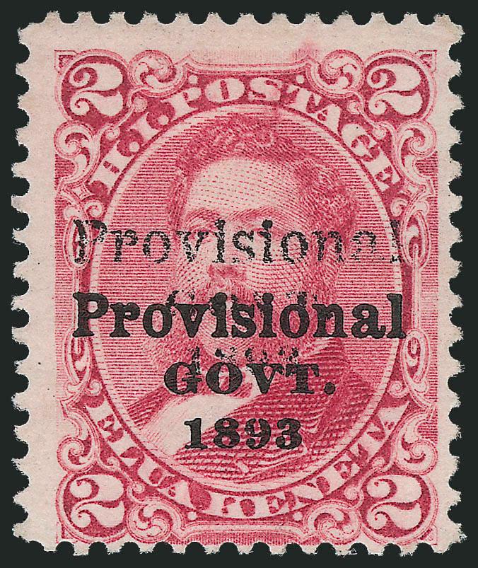 VERY FINE APPEARING AND RARE ORIGINAL-GUM EXAMPLE OF THE 1893 2-CENT ROSE WITH CATEGORY I DOUBLE BLACK PROVISIONAL GOVERNMENT OVERPRINT.