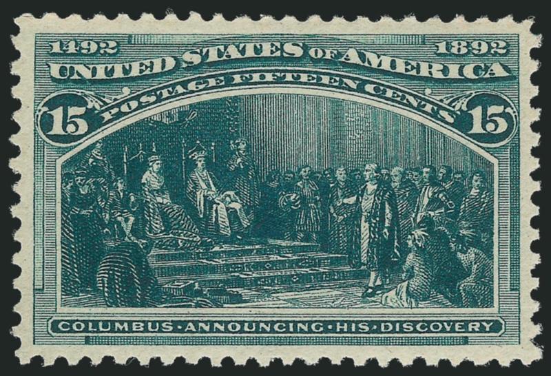 EXTREMELY FINE GEM. A SUPERB MINT NEVER-HINGED EXAMPLE OF THE 15-CENT COLUMBIAN ISSUE.