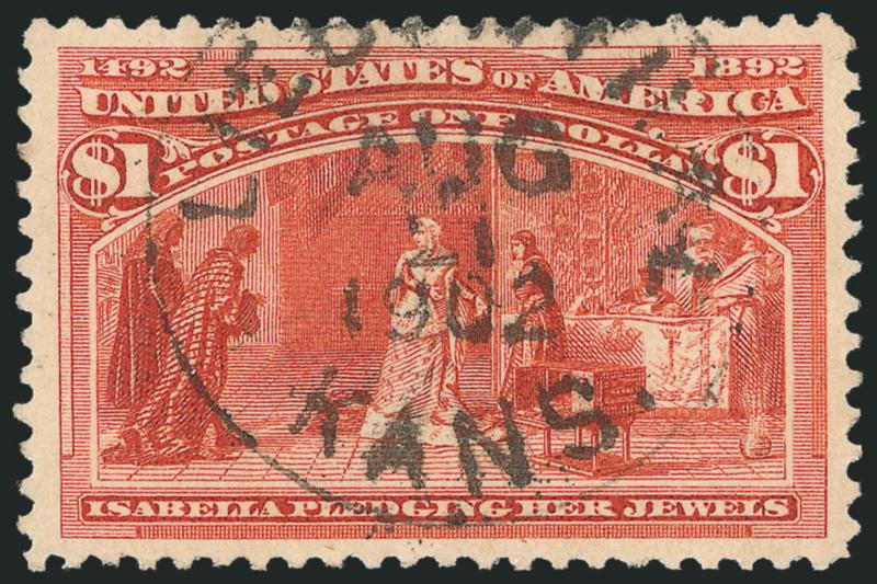 EXTREMELY FINE GEM. THE $1.00 COLUMBIAN ISSUE IS SURPRISINGLY DIFFICULT TO OBTAIN IN SUCH SUPERB USED CONDITION. THIS IS EASILY ONE OF THE FINEST WE HAVE ENCOUNTERED. THIS REMARKABLE STAMP HAS BEEN AWARDED THE GRADE OF XF-SUPERB 95 JUMBO BY P.S.E. -- THIS IS THE HIGHEST GRADE AWARDED TO DATE AND THE ONLY EXAMPLE TO ACHIEVE THIS GRADE.