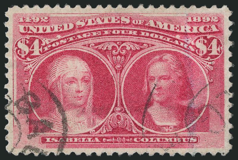 EXTREMELY FINE GEM. A SUPERB USED EXAMPLE OF THE $4.00 COLUMBIAN, WHICH HAS BEEN GRADED XF-SUPERB 95 BY P.S.E.