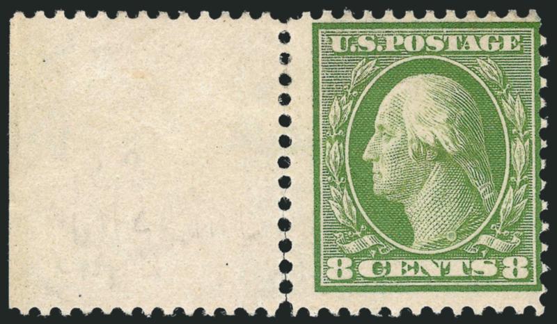 FINE. A SCARCE ORIGINAL-GUM EXAMPLE OF THE RARE 8-CENT WASHINGTON ON BLUISH PAPER WITH WIDE SHEET SELVAGE AT LEFT.