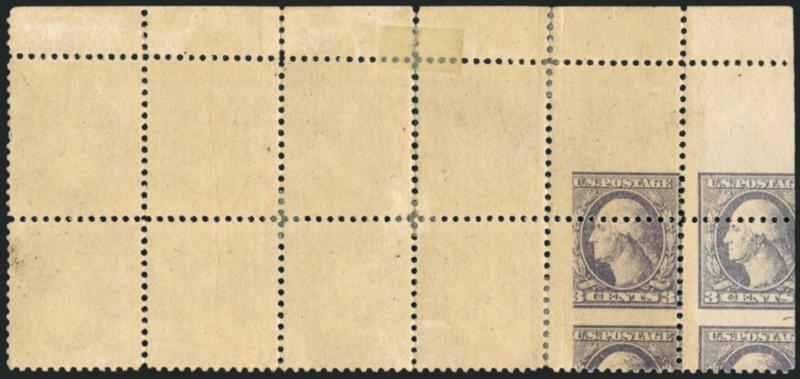 THE ONLY KNOWN PLATE NUMBER BLOCK OF THIS RARE DOUBLE IMPRESSION.
