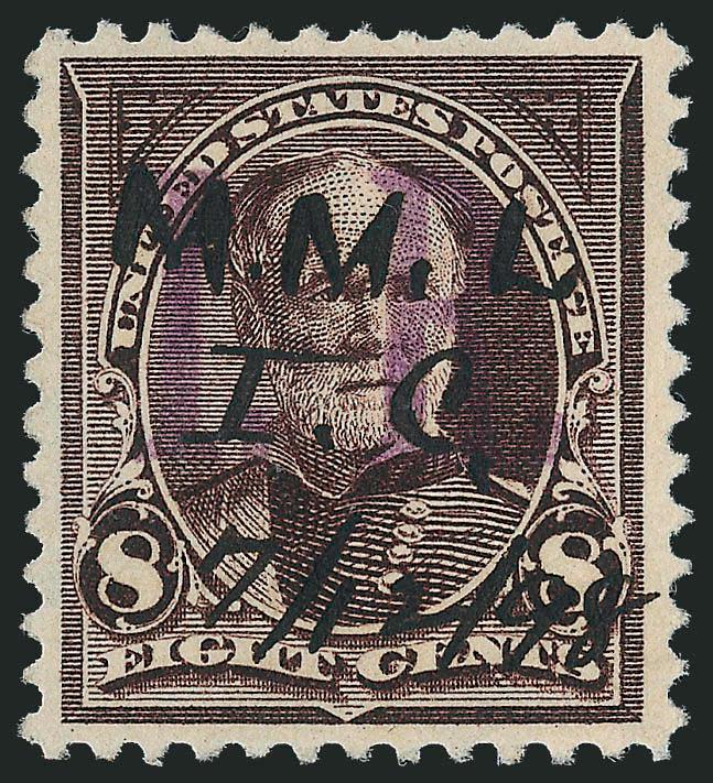 EXTREMELY FINE EXAMPLE OF THE 8-CENT "I.R." EMERGENCY PROVISIONAL OVERPRINT. THIS IS PROBABLY ONE OF THE FINEST IN EXISTENCE.