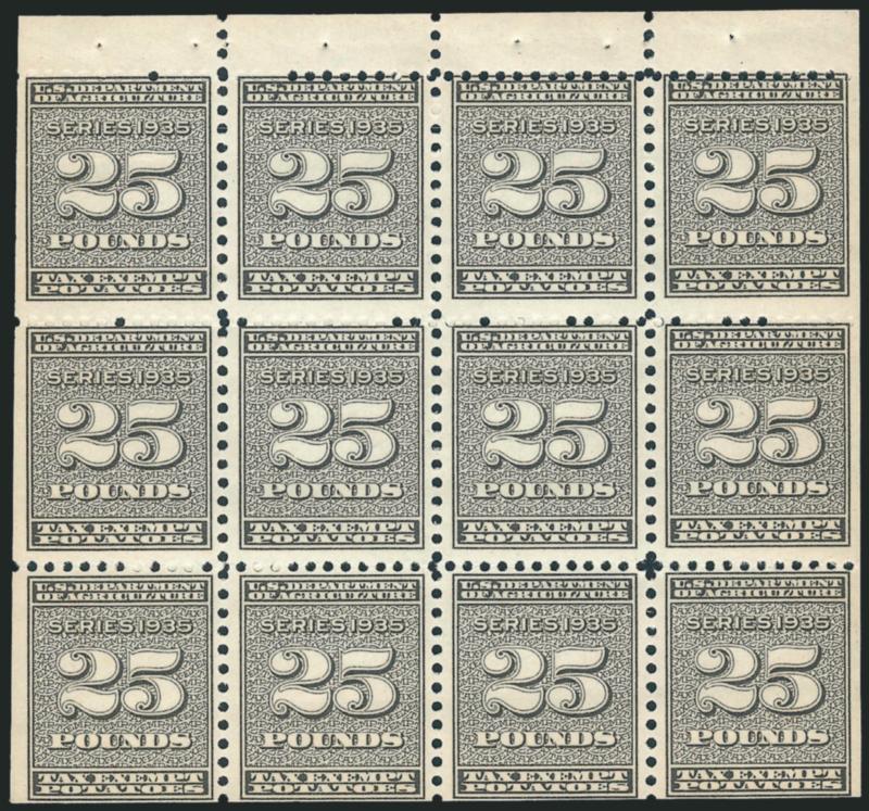FINE. A RARE INTACT BOOKLET PANE OF THE 25-POUND 1935 POTATO TAX STAMP. A GREAT RARITY.