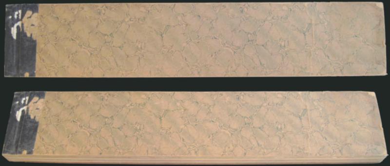 VERY FINE. A BEAUTIFUL INTACT SAMPLE BOOK SHOWING THE ONE-CENT AND 2-CENT ORANGE DESIGNS OF THE LAST REVENUE STAMPED PAPER ISSUE ON A PHENOMENAL RANGE OF PAPERS.