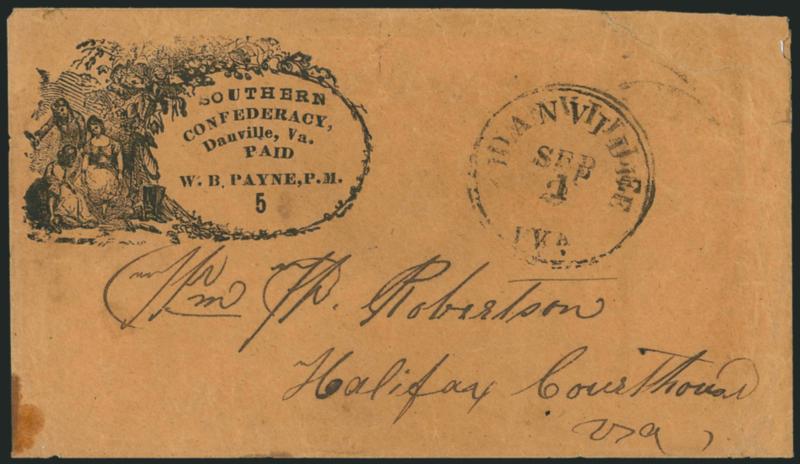 VERY FINE. CONSIDERED TO BE ONE OF THE FINEST OF THE FEW KNOWN DANVILLE PROVISIONAL ENTIRES.
