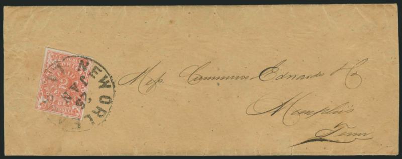 VERY FINE. AN OUTSTANDING CIRCULAR-RATE USE OF THE RARE NEW ORLEANS 2-CENT RED PROVISIONAL. ONLY TEN COVERS RECORDED IN OUR CENSUS.