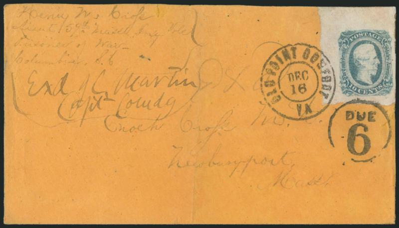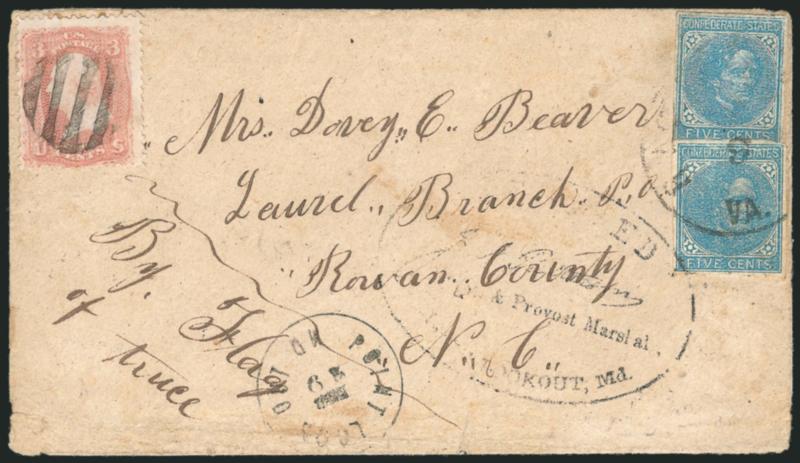 VERY FINE APPEARANCE. AN UNUSUAL MIXED FRANKING ON A PRISONER-OF-WAR COVER FROM POINT LOOKOUT THROUGH OLD POINT COMFORT AND RICHMOND.