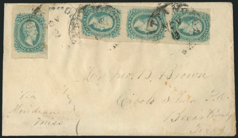VERY FINE APPEARANCE. A WONDERFUL WESTBOUND TRANS-MISSISSIPPI EXPRESS COVER TO TEXAS FROM THE ARMY OF TENNESSEE AFTER EVACUATING CHATTANOOGA.