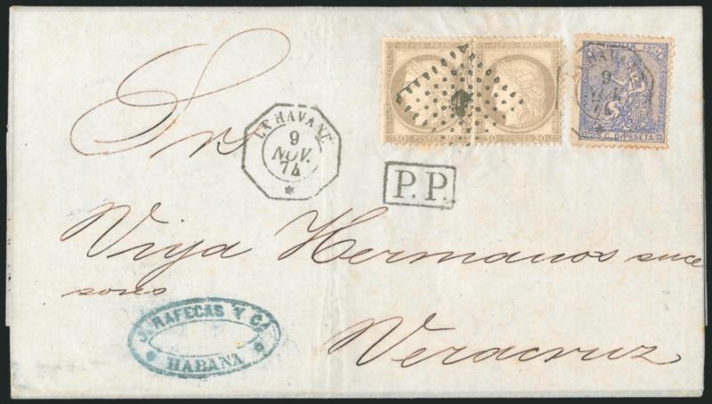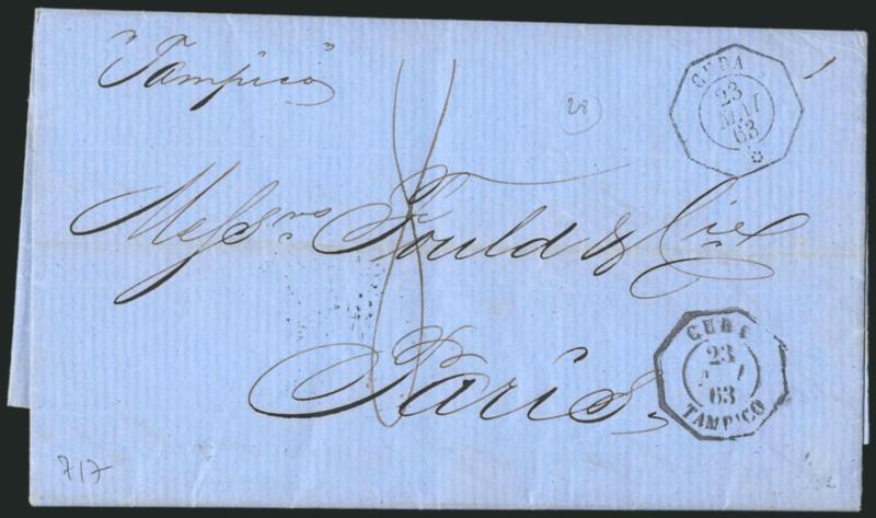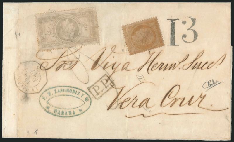 VERY FINE APPEARANCE. A RARE COVER CARRIED ON THE PACKET "FLORIDE" FROM VERA CRUZ AND FORWARDED IN HAVANA.