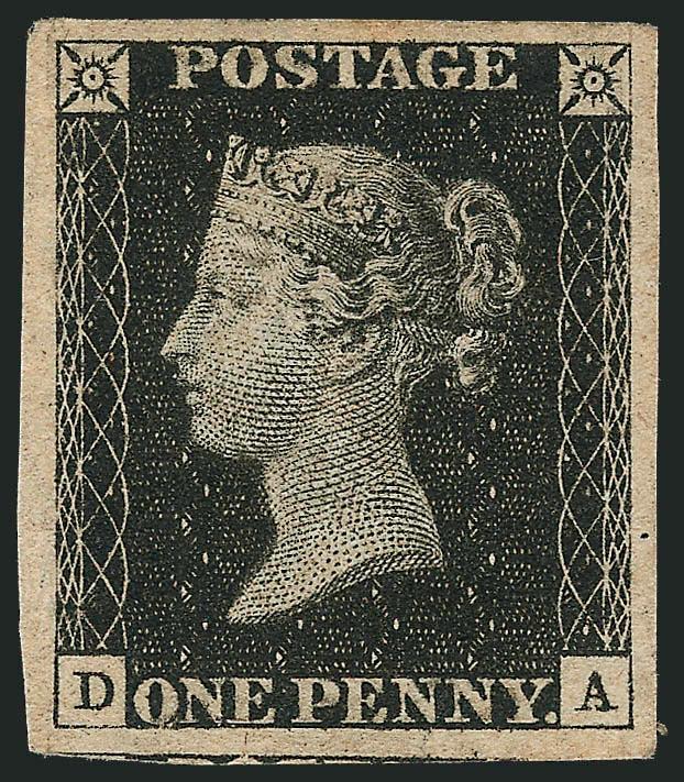 EXTREMELY FINE GEM. A SUPERB ORIGINAL-GUM EXAMPLE OF THE FAMOUS GREAT BRITAIN 1840 PENNY BLACK. THE PENNY BLACK IS RARELY SEEN IN SUCH SUPERB SOUND ORIGINAL-GUM CONDITION AND WITH SUCH WIDE MARGINS.
