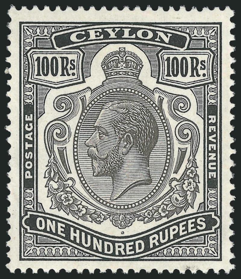 VERY FINE AND CHOICE EXAMPLE OF THE CEYLON 100-RUPEES KING GEORGE V ISSUE WITH THE SCROLL VARIETY.