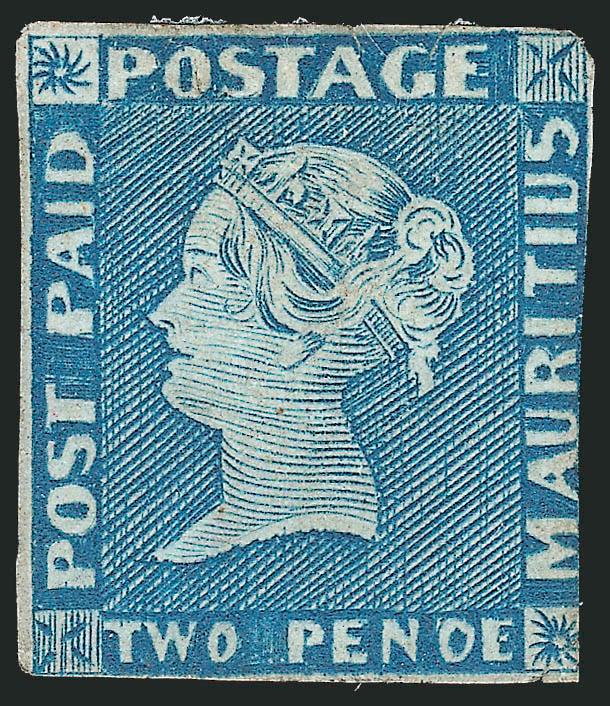 FINE APPEARANCE. AN EXTREMELY RARE UNUSED EXAMPLE OF THE MAURITIUS 2-PENCE "POST PAID" FROM AN EARLY INTERMEDIATE IMPRESSION AND CLEARLY SHOWING THE "PENOE" SPELLING ERROR. ONE OF THE GREAT RARITIES OF MAURITIUS.