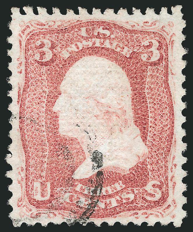 EXTREMELY FINE GEM. WIDELY REGARDED BY STUDENTS OF UNITED STATES STAMPS AS THE FINEST USED EXAMPLE OF THE 1867 3-CENT ROSE C GRILL IN EXISTENCE.