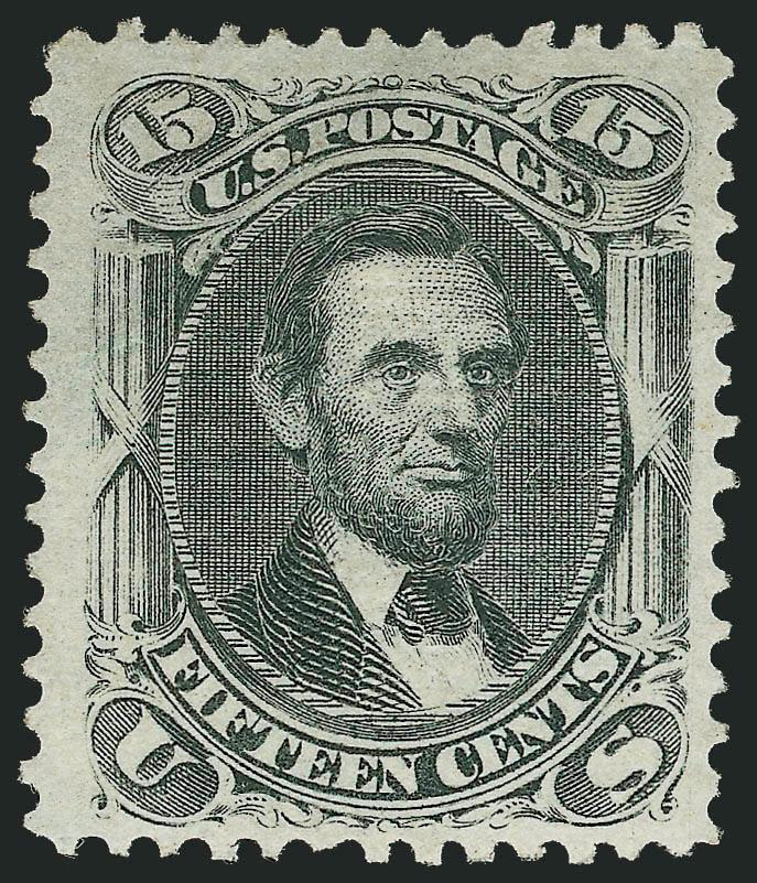 As an indication of the rarity of 15c E Grill stamps with original gum, the Scott Catalogue values original-gum condition at more than twice the value of unused without gum. This stamp, with its unusually wide margins, full original gum, and overall freshness, is truly a remarkable rarity.