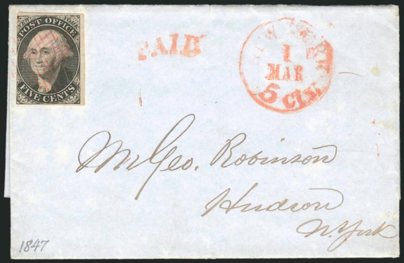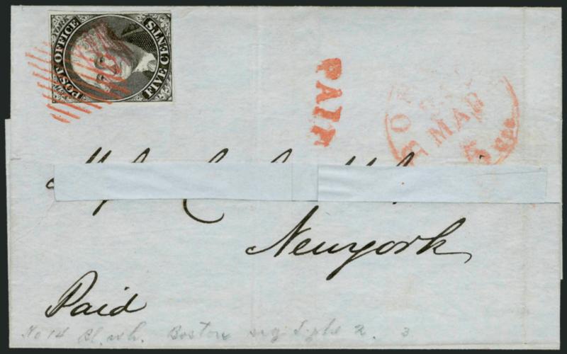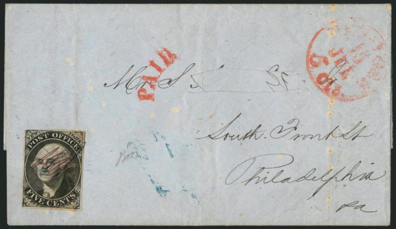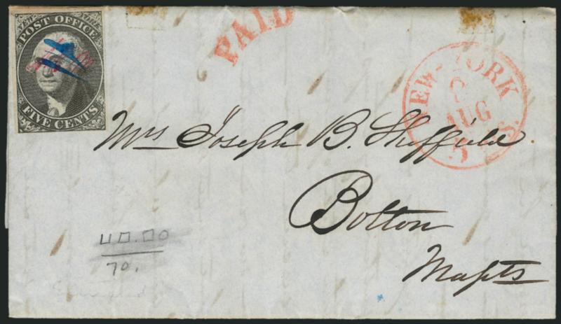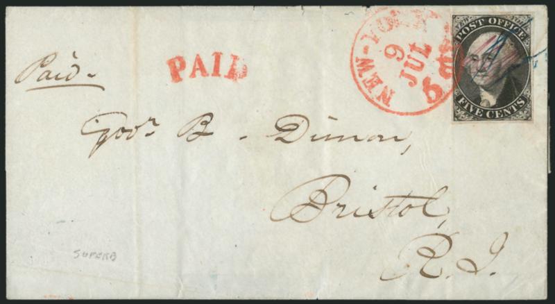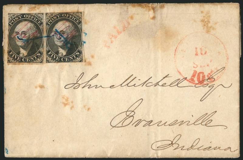 VERY FINE. A DESIRABLE PAIR OF THE NEW YORK POSTMASTER'S PROVISIONAL ON A COVER TO ALABAMA.