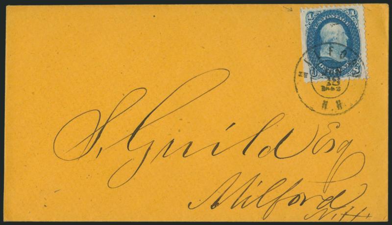 1529 c 3c Rose (65). Outstanding centering with wide margins, brilliant color, cancelled by central strike of 5-ring target, matching "SOUTH LITCHFIELD ME." and "MAR. 10" straightline handstamps on cover to Augusta Me., Extremely Fine, a very choice stamp and strike of this rare straightline which is unlisted in the Dow book