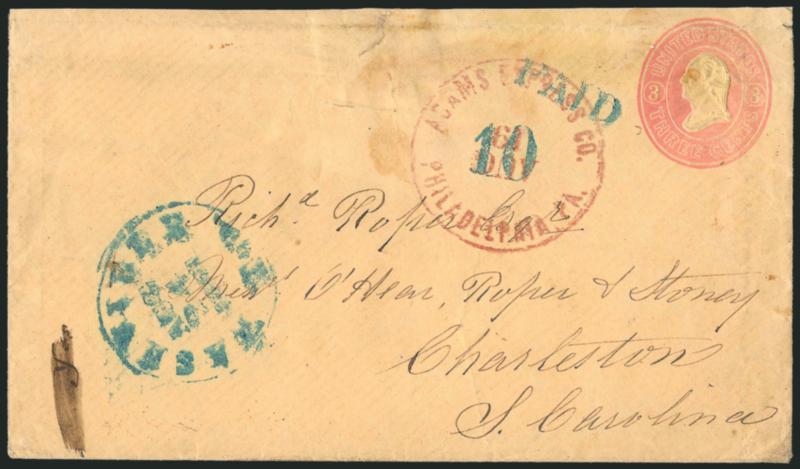 FINE. A RARE EXAMPLE OF THE ADAMS PHILADELPHIA OFFICE DATESTAMP, OF WHICH SEVEN EXAMPLES ARE RECORDED. THIS IS THE LATEST RECORDED USE.