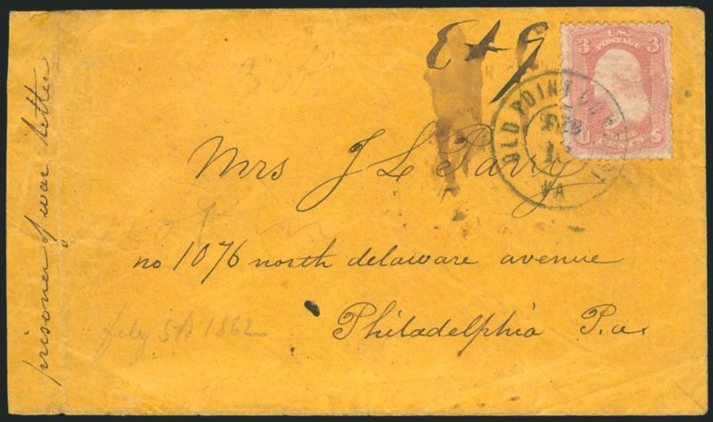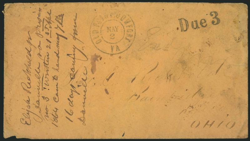 VERY FINE. THIS IS THE ONLY COVER KNOWN FROM THE FEDERAL PROVOST MARSHAL PRISON IN KNOXVILLE.
