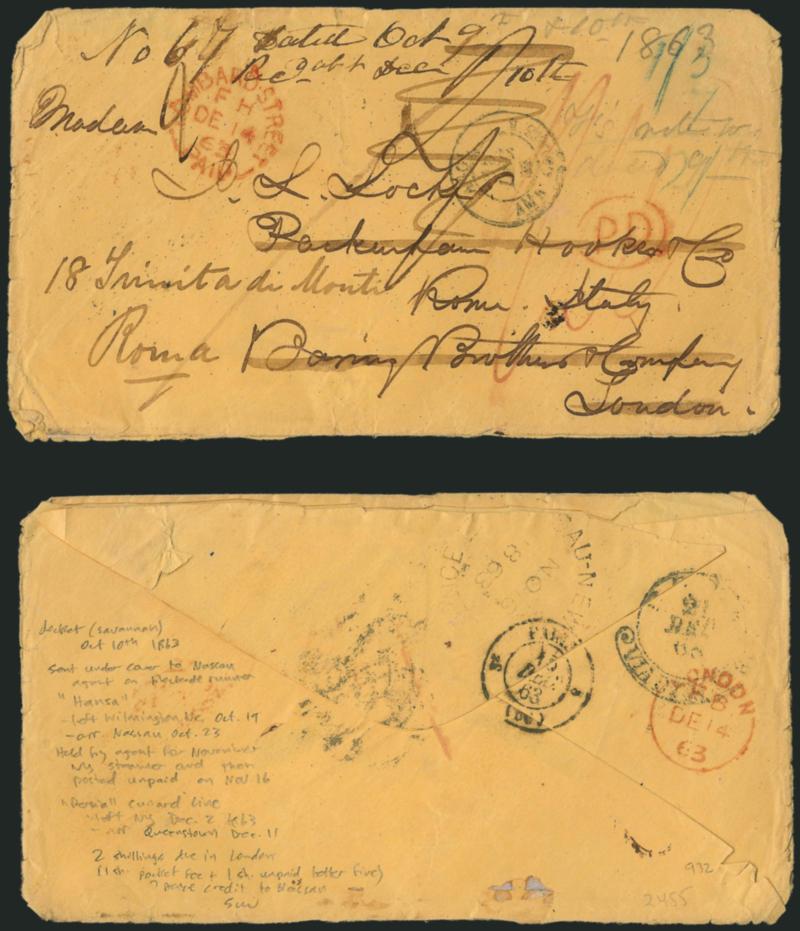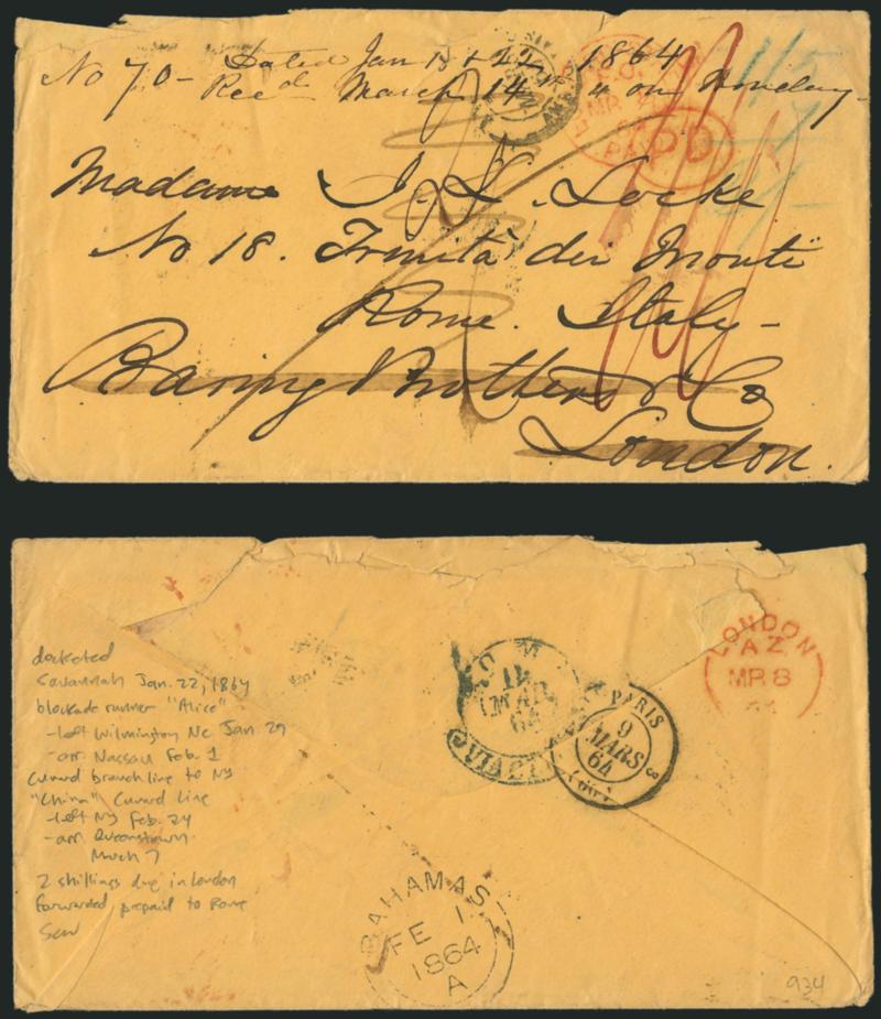VERY FINE AND THE ONLY RECORDED COVER WITH THIS "CONFEDERATE GOVERNMENT MAIL" ROUTE DESIGNATION.