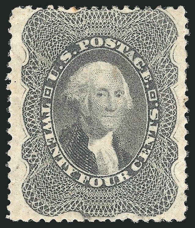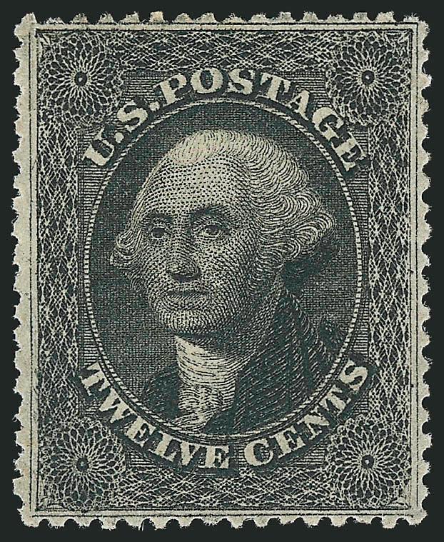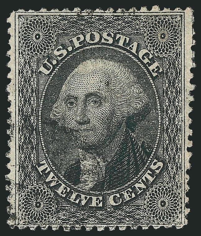 434 og Image12c Black, Plate 3 (36B). Original gum, lightly hinged, intense shade, virtually perfect centering, vastly differing P.F. certificates, with 1998 certificate stating Plate 1 Scott 36, previously hinged, genuine, with 2011 certificate stating Plate 3 Scott 36B, original gum, reperfed at left (with which we agree), still an Extremely Fine appearing stamp (Image)