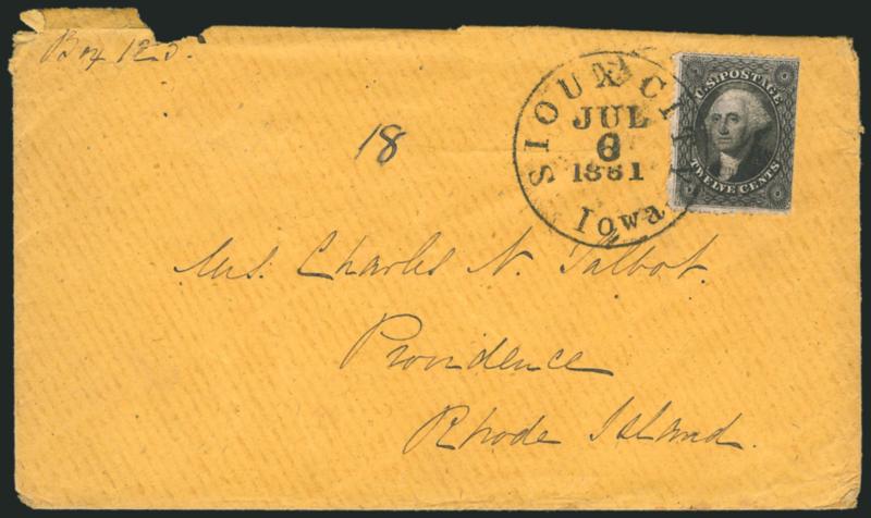 1772 c Image1851-57 Issue Covers. Three covers, No. 36B on Jul. 1861 four-times domestic rate from Sioux City Ia. to Providence R.I., No. 25 on Aug. 1857 cover used within New York, No. 11 Brownish Carmine with Boyd's City Express handstamp, first cover with edge tears and missing top flap, overall Fine appearance (Image)