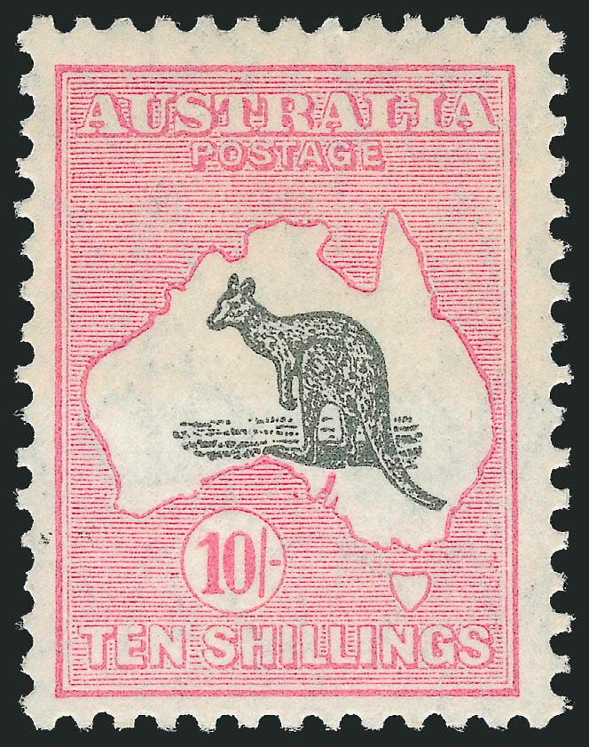 1799 og ImageAUSTRALIA, 1929, 10sh Kangaroo (101, SG 112). Mint N.H. except for pencil notation on back, bright colors, fresh and Fine, SG £400, Scott Retail as hinged (Image)