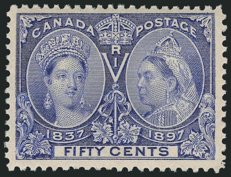 1804 og ImageCANADA, 1897, 50c Jubilee (60, SG 135). Original gum, barest trace of hinging, lovely rich color, Very Fine, with 2010 P.F. certificate (VF 80), SG £150 (Image)