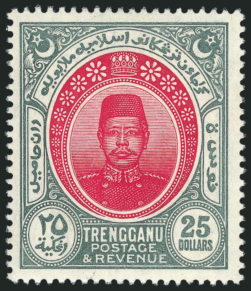 1833° og ImageMALAYA, TRENGGANU, 1921, $25.00 Blue & Lilac (39, SG 45). Lightly hinged, bright colors, fresh and Very Fine, SG £800 (Image)