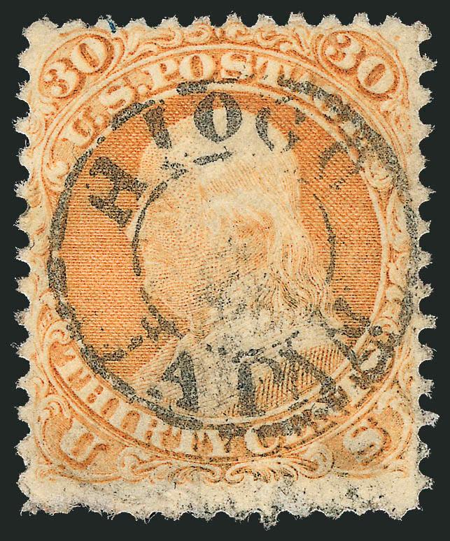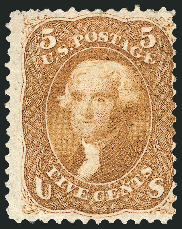 EXTREMELY FINE GEM. A BEAUTIFUL USED EXAMPLE OF THE 5-CENT 1861 ISSUE IN THE BROWN YELLOW SUB-SHADE.