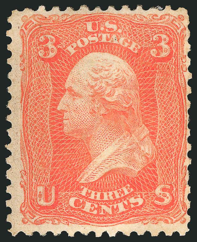 454 ng Image3c Scarlet (74). Unused (no gum), clear to wide margins three sides, close with blunted perfs at right, strong color, Fine, an attractive example of this rare trial printing, with 1957 and 2011 P.F. certificates, Scott Retail as original gum (Image)