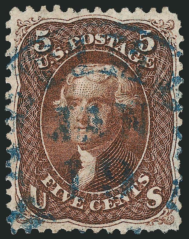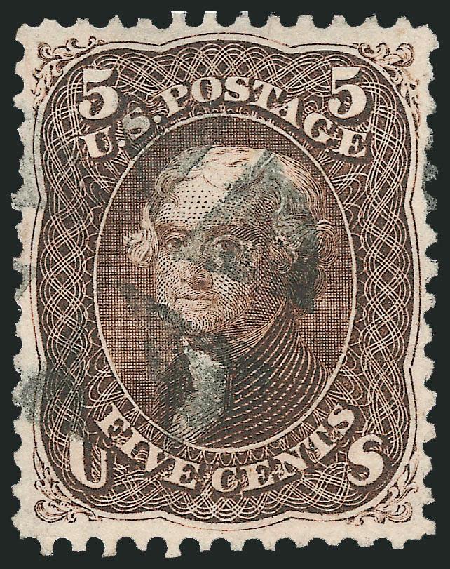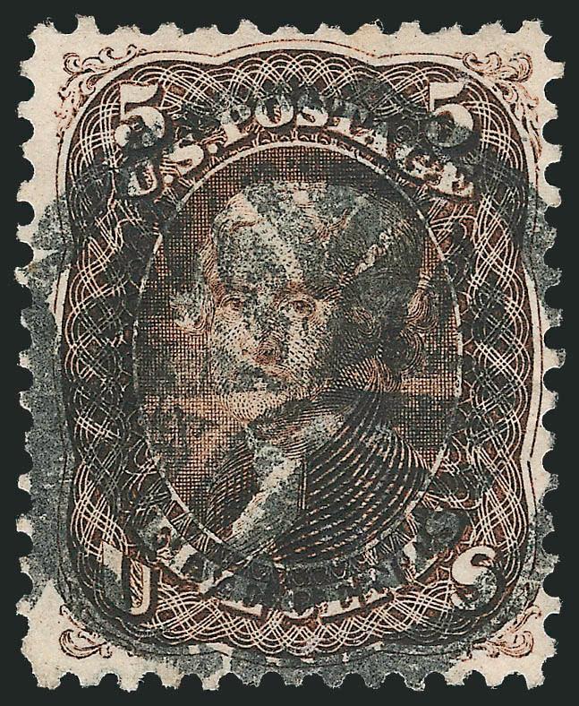 456   Image5c Brown (76). Rich color, detailed impression showing all of the fine detailed engraving of the lathework and design, unobtrusive strike of quartered cork cancel, Extremely Fine Gem, a superb stamp in every respect, P.S.E. encapsulated (XF-Superb 95, SMQ $1,450.00), only one has graded higher to date (at 95J) (Image)