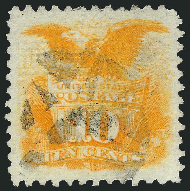 504   Image10c Yellow (116). Vivid color, wide and balanced margins, unusual segmented cork cancel, Extremely Fine Gem, a beautiful stamp, with 2011 P.S.E. certificate (XF-Superb 95, SMQ $650.00) (Image)