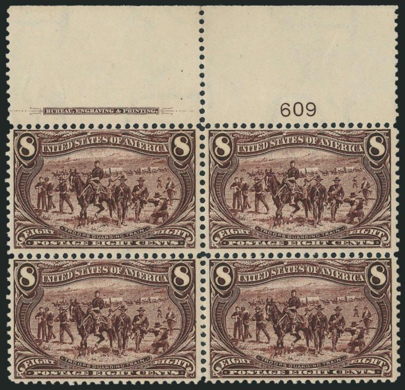 EXTREMELY FINE GEM. A MAGNIFICENT MINT NEVER-HINGED EXAMPLE OF THE 4-CENT TRANS-MISSISSIPPI ISSUE.