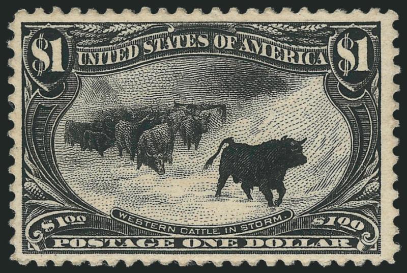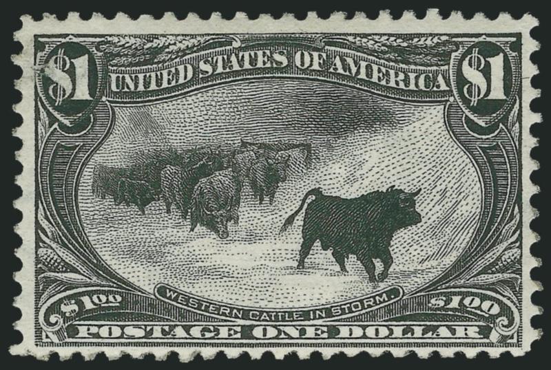 655 og Image$1.00 Trans-Mississippi (292). Original gum, attractive centering, very minor perf tip gum soaks, otherwise Very Fine, with 1983 P.F. certificate that does not mention the gum soaks (Image)