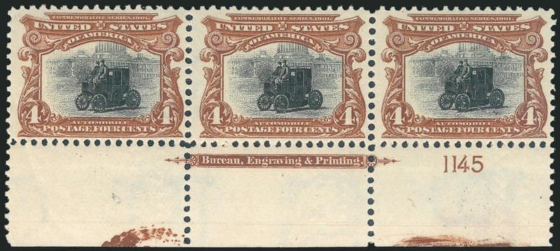 663 nh Image4c Pan-American (296). Mint N.H. bottom imprint and plate no. 1145 strip of three, bright and fresh, Very Fine (Image)