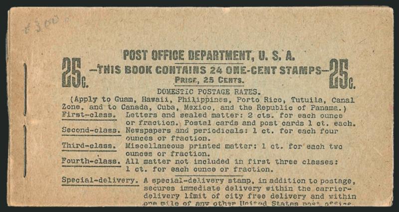 VERY FINE APPEARANCE. A RARE AND DESIRABLE COMPLETE BOOKLET OF FOUR PANES OF THE 1902 ONE-CENT ISSUE.
