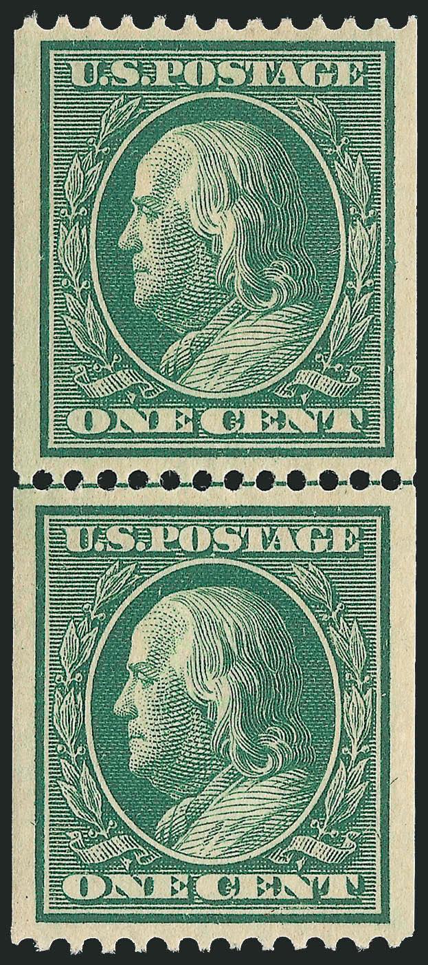 According to Johl (Vol. 1, page 153), this coil was issued approximately eighteen months after the horizontal coil Scott 354 and was only in use for a short period of time.