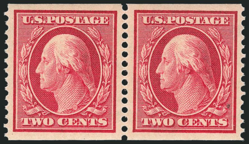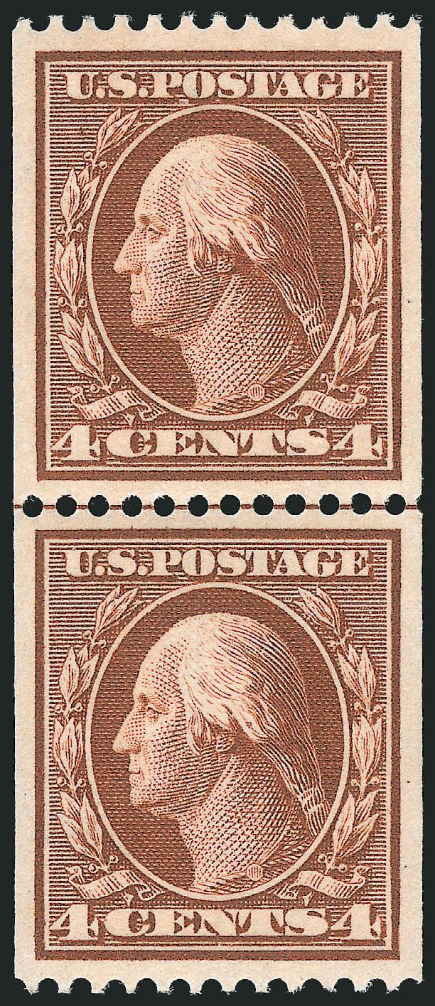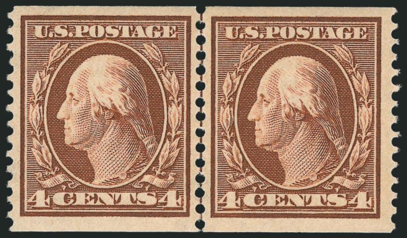 EXTREMELY FINE GEM. A SUPERB GUIDE LINE PAIR OF THE 4-CENT HORIZONTAL COIL SCOTT 350, WHICH HAS BEEN GRADED SUPERB 98 BY P.S.E.