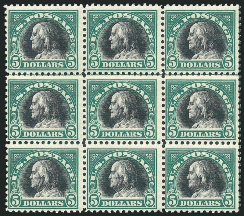 784 nhbl Image$5.00 Deep Green & Black (524). Mint N.H. block of nine, guide lines at right and between 1st and 2nd rows, Fine, Scott Retail as singles (Image)