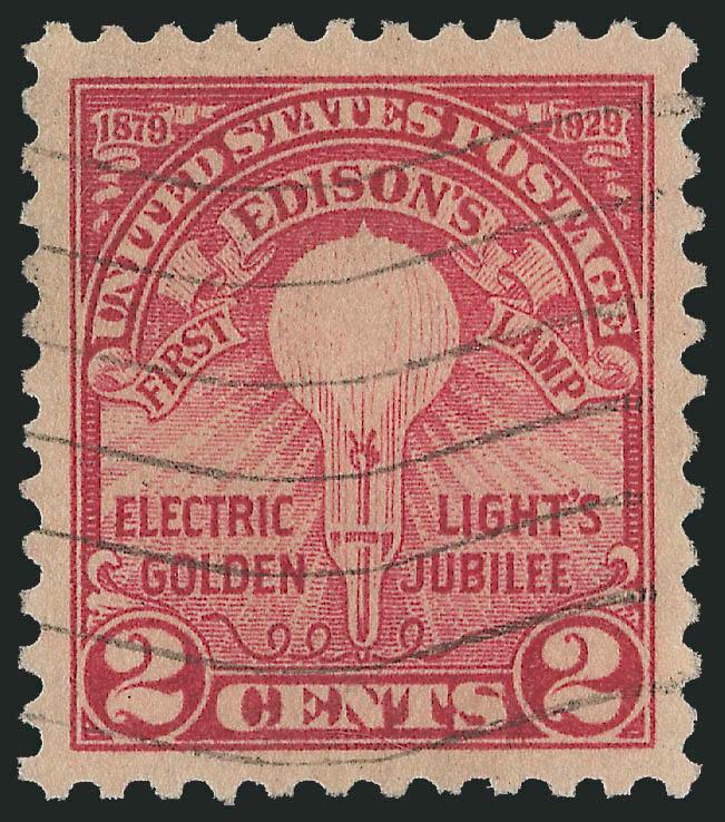 809   Image2c Electric Light (654). Jumbo margins and essentially perfect centering, light wavy-line machine cancel, Extremely Fine Gem, P.S.E. encapsulated (Superb 98 Jumbo, unpriced in SMQ above the grade of 98, SMQ $290.00 as 98), this is the highest grade awarded to date and the only used example to achieve this grade (Image)