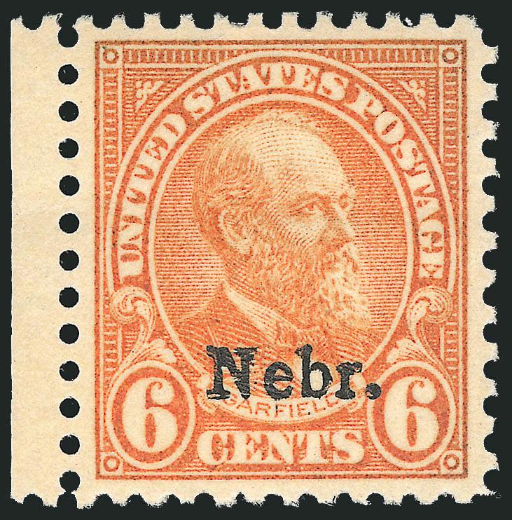 810 nh Image6c Nebr. Ovpt. (675). Mint N.H. with selvage at left, bright shade, perfectly centered, Extremely Fine Gem, a superb stamp in every respect, with 2007 P.S.E. certificate (Superb 98, SMQ $1,200.00) (Image)