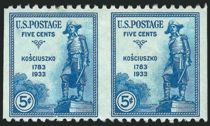 812   Image5c Kosciuszko, Horizontal Pair, Imperforate Vertically (734a). Left stamp with large tear, small thin spot and minor gum toning spot, Fine appearance, only one pane of 100 discovered, therefore only 50 pairs known, four of which are in the unique plate block of eight (Image)