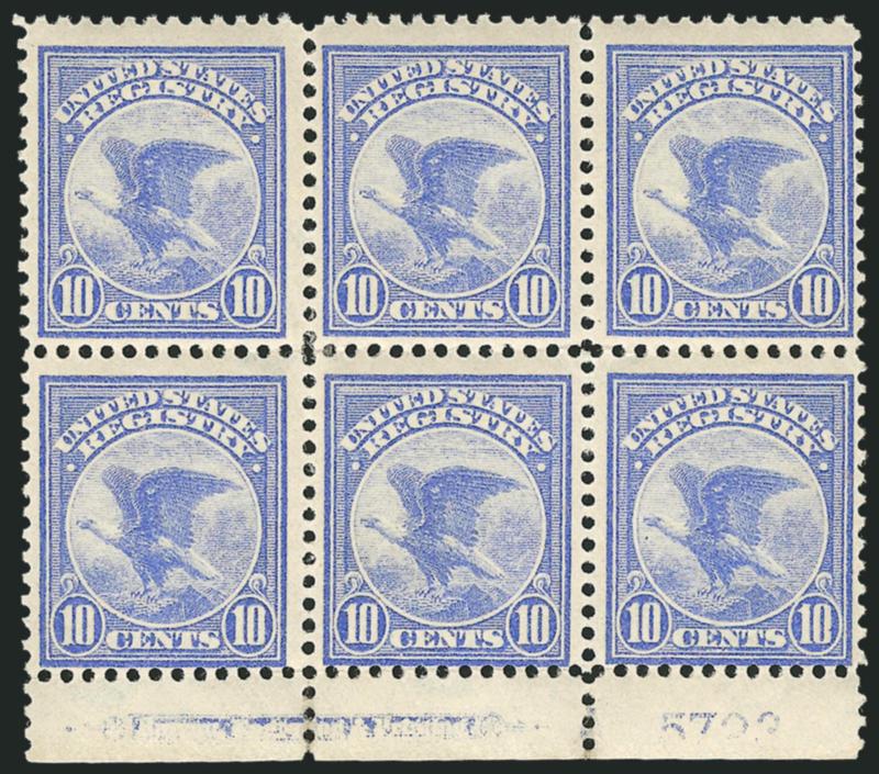 848 ogbl Image10c Ultramarine, Registration (F1). Bottom plate no., imprint and "A" block of six, bottom center stamp lightly hinged, other stamps with light disturbance from perf reinforcing, bright color, imprint and plate no. lightly printed, Fine plate block (Image)