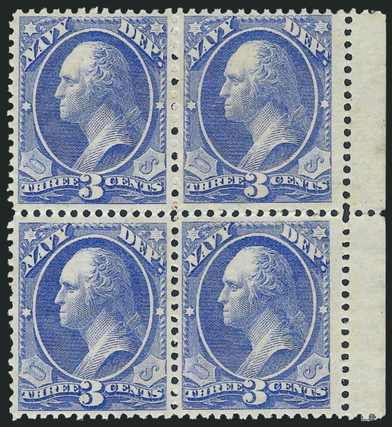 889 ogbl Image3c Navy (O37). Block of four with right selvage, original gum, lightly hinged, bright color, handsomely centered, Very Fine (Image)
