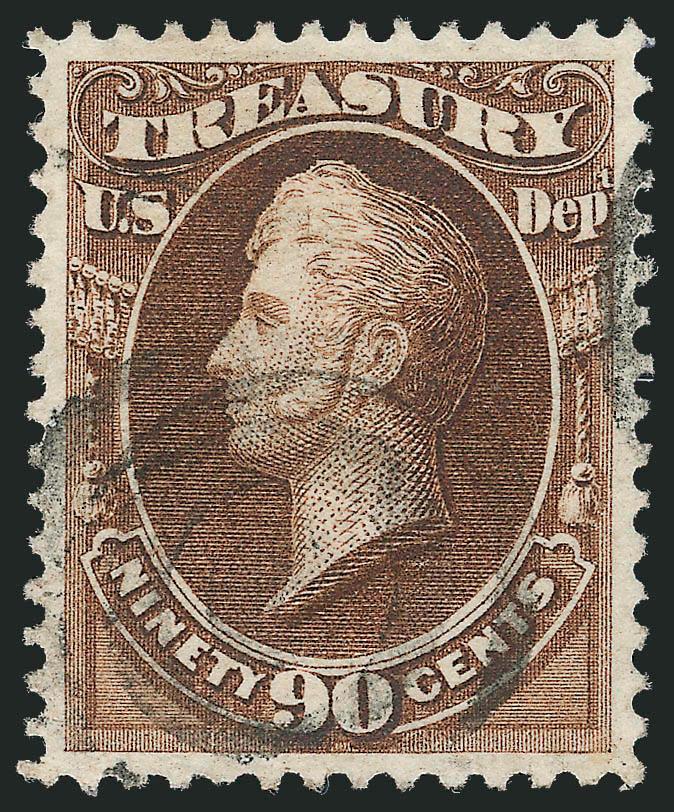 892   Image90c Treasury (O82). Gorgeous centering with wide and balanced margins, rich color, unobtrusive strike of duplex cancel, Extremely Fine Gem, a stunning used stamp, difficult to obtain in such superb condition, with 2011 P.S.E. certificate (Superb 98, unpriced in SMQ in used condition) (Image)