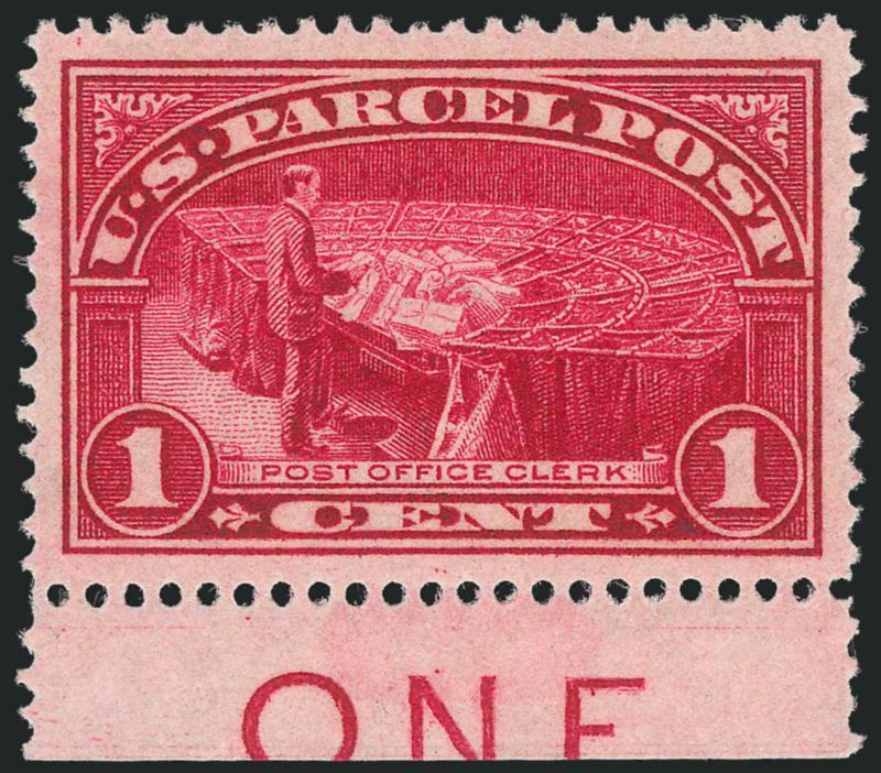 905 nh Image1c Parcel Post (Q1). Mint N.H., with bottom "One" imprint selvage, brilliant color as fresh as the day it was printed, beautifully centered with Jumbo margins, Extremely Fine Gem, a superb stamp made more desirable by the imprint, with 2007 P.S.E. certificate (Superb 98 Jumbo, unpriced in SMQ above the grade of 98, SMQ $500.00 as 98), only two have graded higher to date and only five others share this desirable grade (Image)